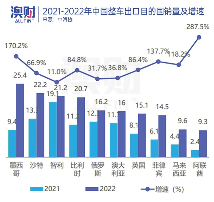 中国对澳大利亚的汽车出口量排在俄罗斯、墨西哥和比利时之后,列居第6位。对澳洲出口占中国产汽车出口总量的6%(欧洲占40%,亚洲占30%,北美占12%,南美占7%),而考虑到澳洲人口只有2500万人,只占全球人口0.5%,6%的比例也是相对比较高了。
