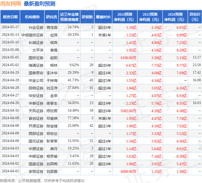 最新盈利预测明细如下: