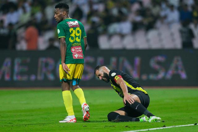 当地时间2023年11月30日,23/24沙特联第15轮,吉达联合4-2赛哈特海湾,本泽马在比赛中受伤 图据视觉中国