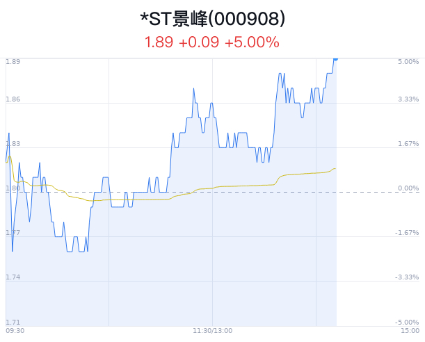 05月21日,*ST景峰(000908)股价大幅上涨,截至14点11分,*ST景峰触及涨停,报1.89元/股,成交7847万元,换手率5.48%。