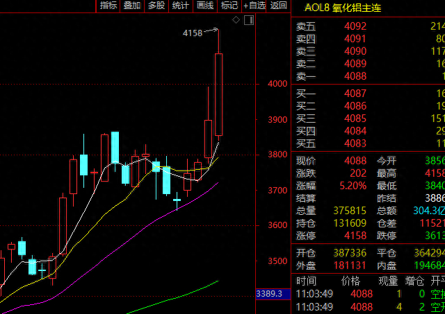 诸多因素结合,在经过前期极端性震荡调整后,近日氧化铝期货再度上涨,并再创新高,主力合约连破3900、4000、4100关口。
