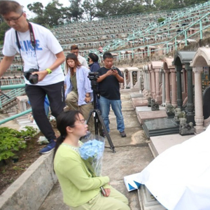 港媒称,黄家驹墓碑目前被白布遮盖。图自港媒