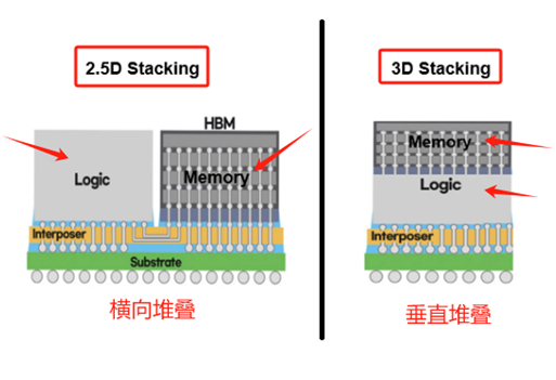 目前,全球最新的封装技术,只能支持不同芯片的横向堆叠,也就是我们常说的2.5D封装。