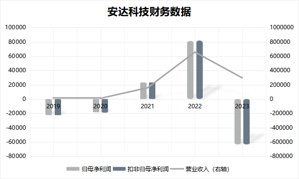 年报显示,安达科技(830809.BJ)2023年收入、业绩全面下跌。公司本期实现营业收入29.64亿元,同比下滑54.80%;实现归母净利润-6.34亿元、扣非归母净利润-6.34亿元,同比降幅分别达到178.10%、177.68%。本期经营活动产生的现金流量净额转负,为-9.10亿元,较上年减少266.80%。