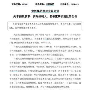 龙佰集团表示,许刚直接持有公司股份6.27亿股,占公司股份总额的26.25%,为公司控股股东、实际控制人。许刚持有的公司股份将按法律法规办理继承手续,公司将根据后续事项进展情况及时履行信息披露义务。
