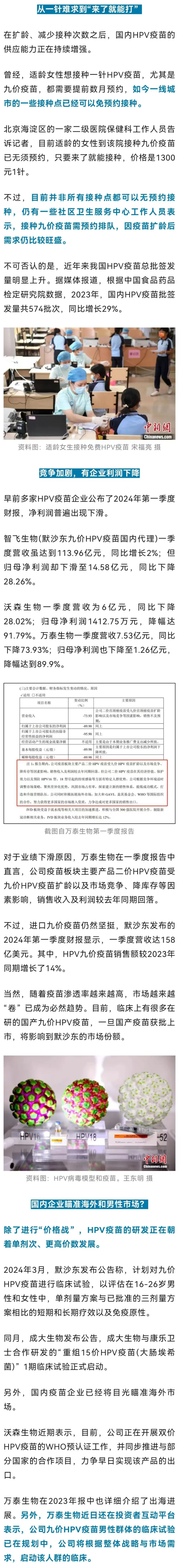 4月底,广东省政府采购中心公布2023年入学适龄女生人乳头瘤病毒(HPV)疫苗第二针采购项目结果,万泰生物的二价HPV疫苗以86元的单价中标,2023年2月、2023年7月同款疫苗的中标价格分别是329元、116元。