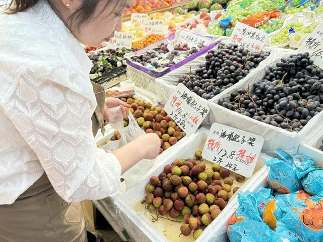 在另一家水果摊位,店员告诉记者,海南妃子笑荔枝上周初上市时单价超过了20元,本周价格开始下滑,降至12.8—16.8元/斤,来到了销售高峰期。除了荔枝,南汇青皮绿肉甜瓜、仙居杨梅、东山枇杷、无锡水蜜桃等夏季水果近期也较受欢迎。