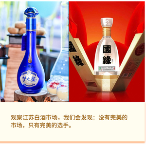 一直以来,江苏白酒市场以其巨大的市场容量和相对开放的姿态,吸引了众多全国性名酒的参与,目前市场整体呈现全国性一二线名酒和地产酒龙头共同割据的态势。