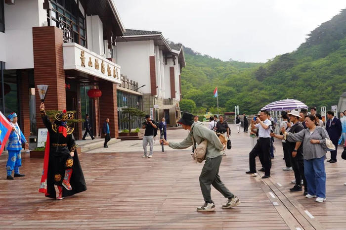 之后,直播组一行继续由玉屏景区深入天海景区,沿途攀登了鳌鱼峰。在攀登鳌鱼峰期间,黄山嶙峋的怪石,令主播直叹惊奇,直播间里的网友们也直呼被种草了。经过鳌鱼峰后,直播一行到达天海景区的白云宾馆。恰逢白云宾馆正在举办山巅民俗表演,通过直播,网友们欣赏了云巅之上的徽州传统舞龙民俗和黄梅戏表演,感受了世外仙境和人间烟火的巧妙融合。
