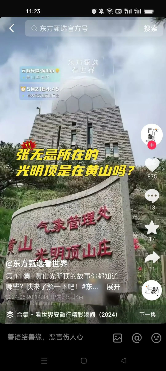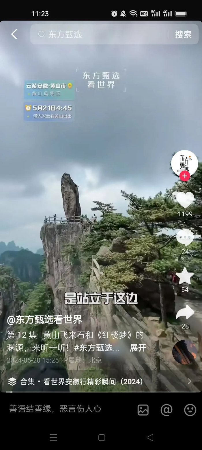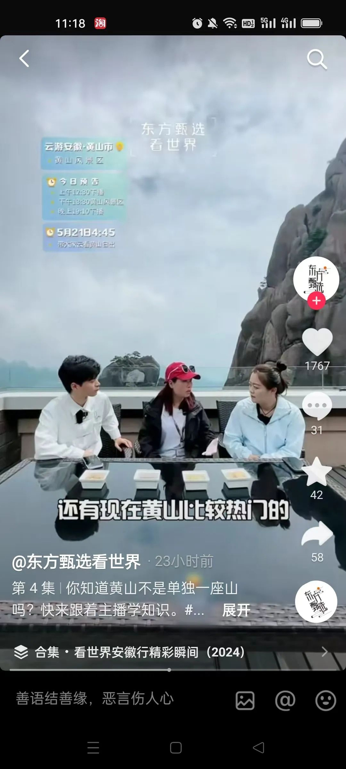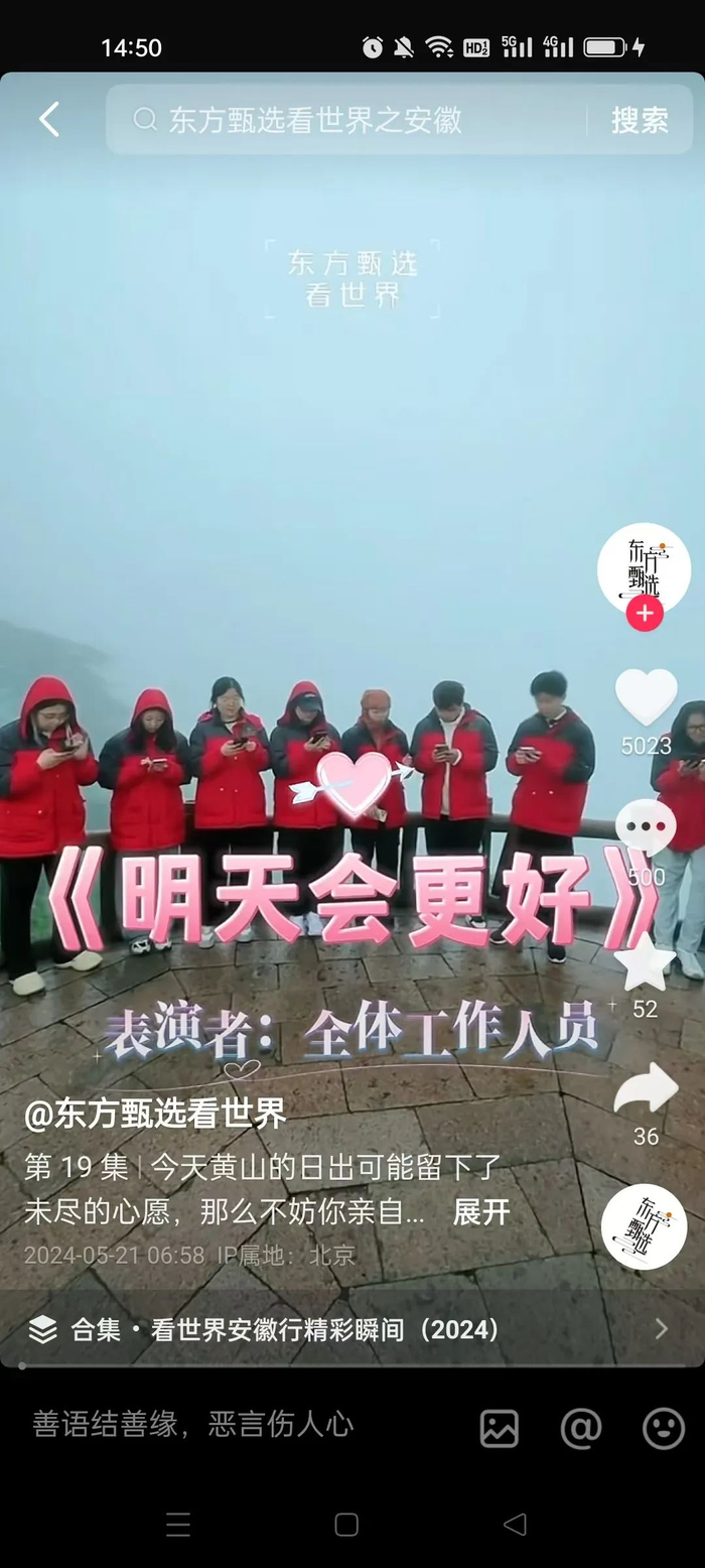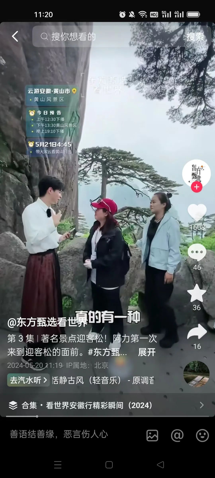 “东方甄选安徽行”登临黄山之巅,直播醉美仙境