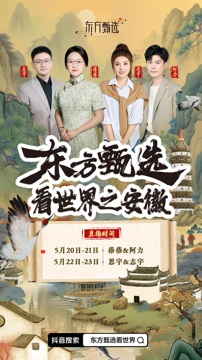 5月20、21日,“东方甄选安徽行”系列直播活动登临黄山之巅,在主播蓓蓓、阿力的带领下,通过抖音号“东方甄选看世界”、东方甄选APP进行直播。此次直播,不仅以走播的方式打卡了黄山云端知名景点,还以定点播的方式呈现了黄山多元的旅游新业态和丰富的酒店食宿玩体验,并在直播间推出多款超值黄山游产品。