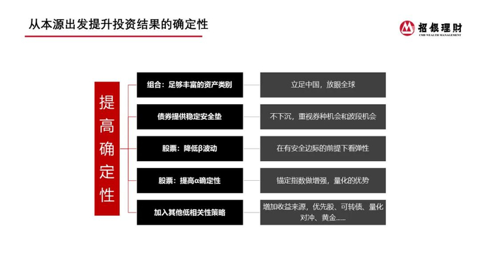 4. 利用理财子牌照优势,寻找与传统股债低相关的、具有绝对收益特征的策略,如优先股、转债、量化对冲策略和黄金等。