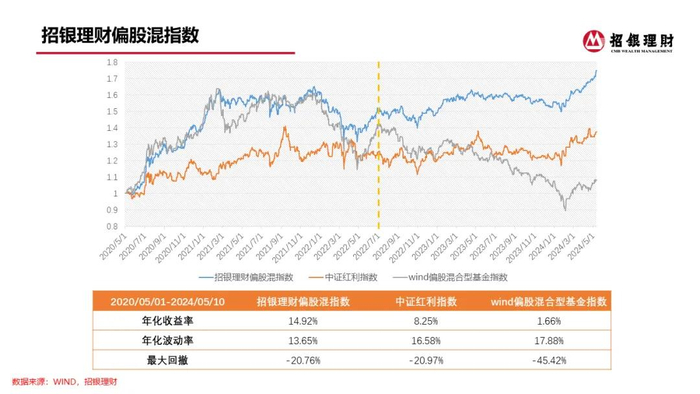 对于招银理财股票投资策略的表现,洪晓峰十分自豪地介绍到,由公司内部自主主动和量化股票策略构建的招银理财偏股混指数,2024年以来连创新高,已大幅跑赢万得偏股混合型指数(885001)。而且招银理财偏股混指数与红利指数相比,整体波动更小,回撤也更小,创新高的能力和绝对收益能力也更强。