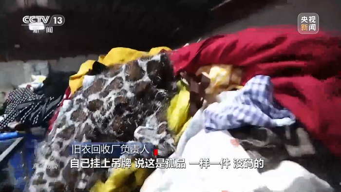 旧衣回收厂负责人:好一点的精品,有很多直播间都从我们这里拿,自己挂上吊牌,然后说是孤品,一样一件,没码的。