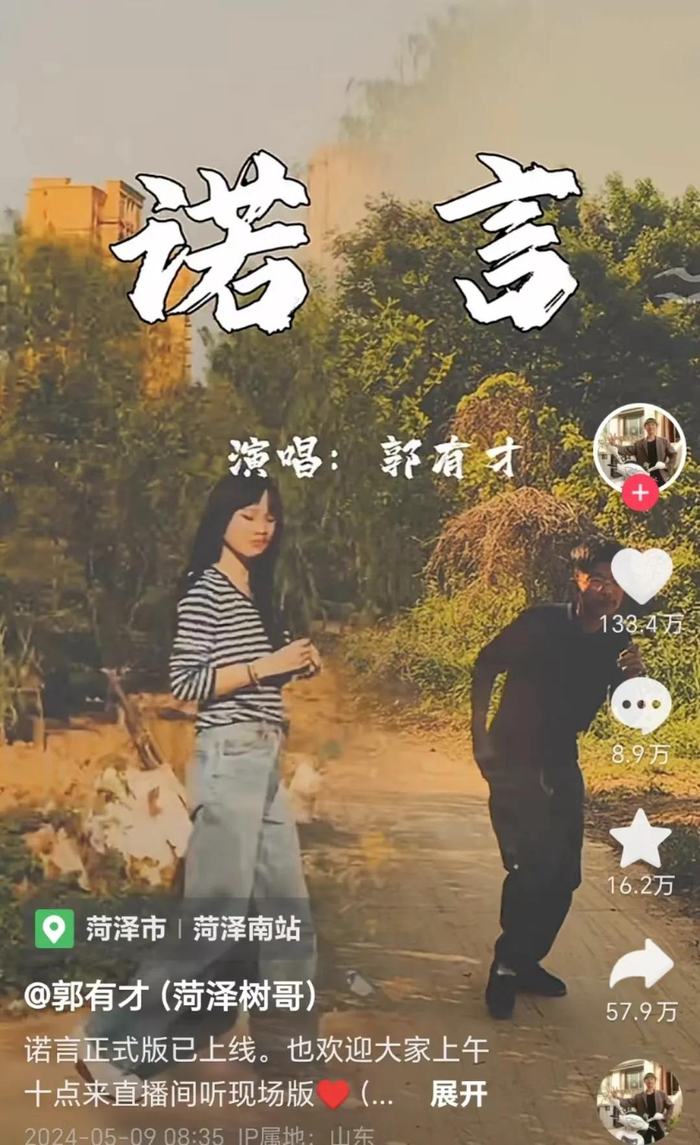 凭借一首翻唱的《诺言》,25岁的烧烤小伙郭有才,瞬间走红全网。