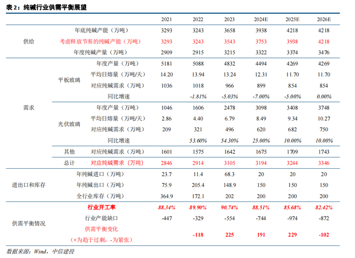 供需平衡:以下,我们做一个较为简洁的纯碱供需平衡推算——