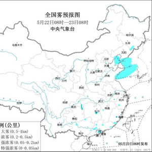 预计,5月22日白天至夜间,渤海北部、黄海北部和中部海域、辽东半岛沿岸和山东半岛沿岸海域将有能见度不足1公里的大雾(见图1)。中央气象台5月22日06时继续发布大雾黄色预警。