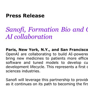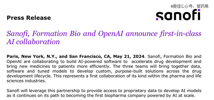 不过有一点疑问,在官方的通稿中,赛诺菲称将携手OpenAI“开发整个药物开发生命周期的定制专用解决方案”。