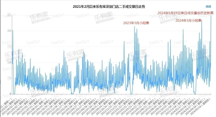 深圳头部中介机构乐有家披露的数据显示,新政后首个周末(5月18-19日),乐有家深圳门店二手看房量对比以往周末上涨127%,成为2018年以来的最高点,超越2020年二季度的历史高峰期;门店二手房成交量对比以往周末上涨117%,5月19日单日成交量创下2021年2月以来的最高点。