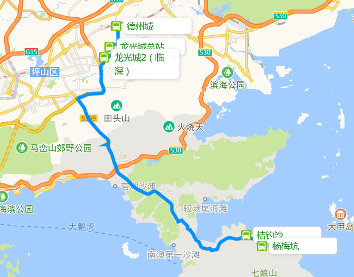 德州城、龙光城总站、龙光城2(临深)、桔钓沙、杨梅坑