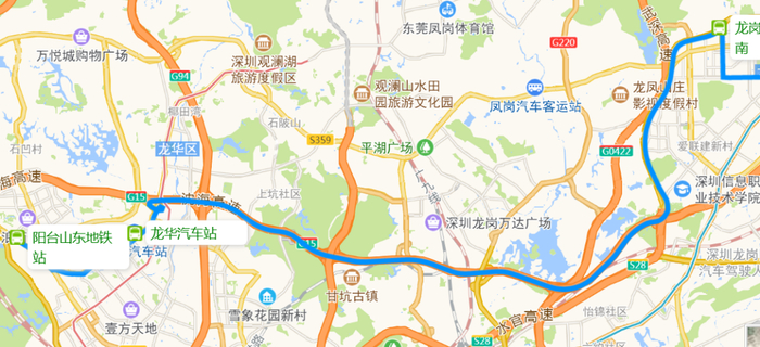 阳台山东地铁站、龙华汽车站、龙岗儿童公园南