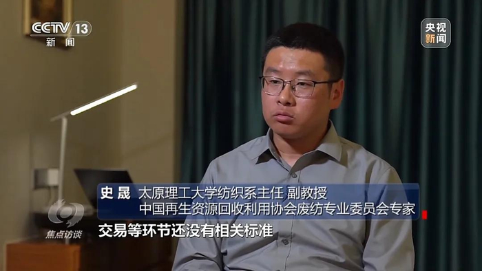 太原理工大学纺织系主任 副教授 中国再生资源回收利用协会废纺专业委员会专家 史晟:目前,二手服装的界定、清洗和消毒、卫生防疫标准要求、交易等环节还没有相关标准,市场规则不明,行业混乱,真假难辨,因此相关标准需要尽快落地,更好助推废旧纺织品循环利用。