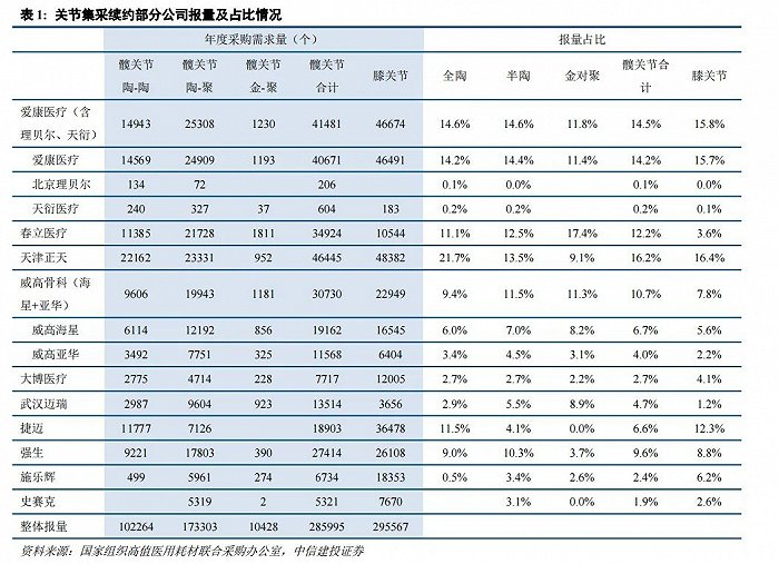 以陶-陶髋关节为例,2021年国产企业天津正天首年采购需求量为11316个,今年续约报量为22162个,增长接近翻倍;大博医疗2021年701个,今年2775个,增长超3倍。