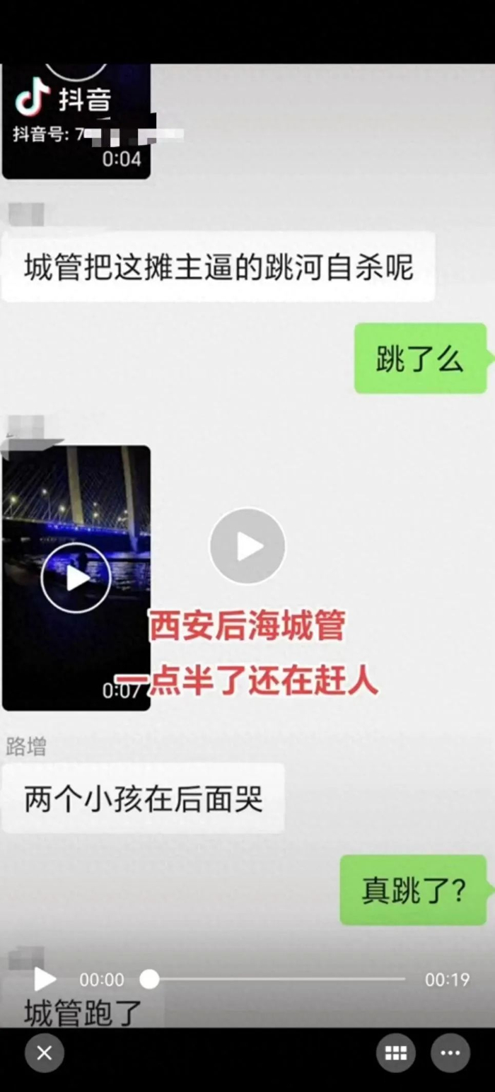 2024年5月19日,西安浐灞分局网安大队民警发现一网民在某视频平台发布一则视频,配有聊天记录称:“后海观景平台城管执法逼得摊贩跳河自杀,城管跑了等”。该视频一经发布迅速引发网民浏览热议,造成不良社会影响。