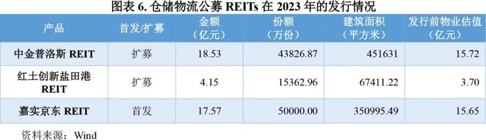 2023年,新发了1支仓储物流公募REITs,即嘉实京东REIT,另有2支已发行的REITs产品进行了扩募,具体情况可见下表。