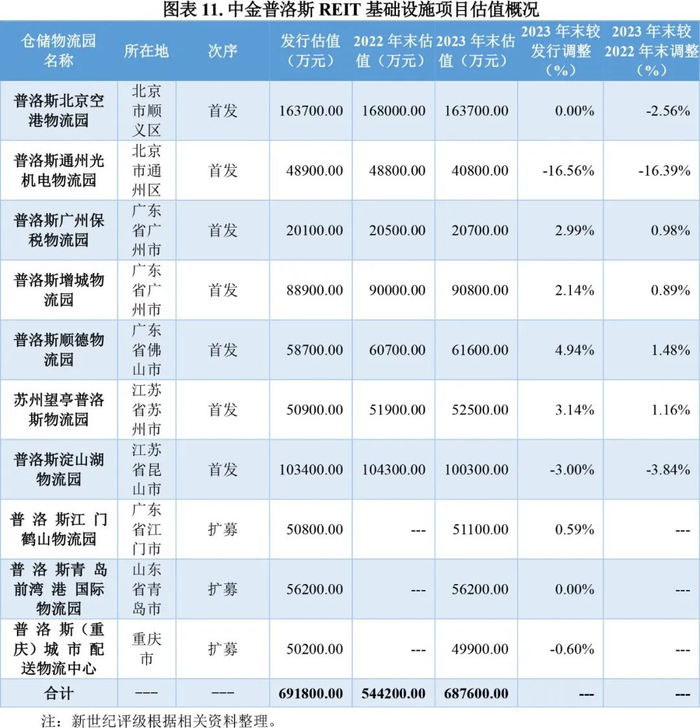 根据评估报告,截至2023年末,该REIT估值总额68.76亿元,底层项目公司收益法折现率假设介于7.50%和8.50%之间,估值有升有降,其中普洛斯通州光机电物流园降幅最大,主要系租金单价下调所致。