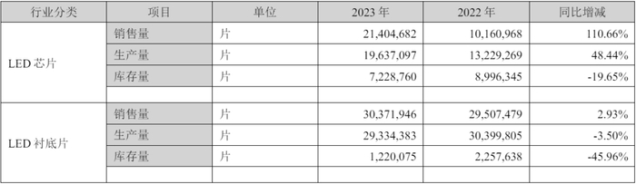 效果是显著的。2023年,京东方华灿光电LED芯片销量同比上升110.66%,LED芯片产量同比上升48.44%;截至2023年年底,京东方华灿光电LED衬底片库存量同比下降45.96%。