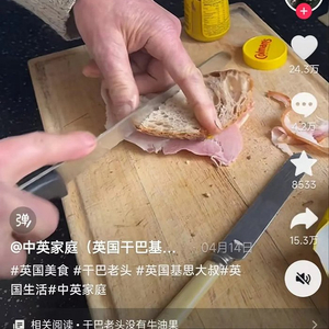在短视频里,只见一个老头取两片硬邦邦的面包,小刀刮一点点黄油涂抹上去,发出“咔吱咔吱”的声音,再依次叠上几片火腿、些许蔬菜叶,一顿饭就这么“糊弄”过去了。