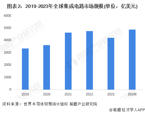集成电路作为先进封装重要下游之一,受半导体行业整体表现不佳影响,2023年市场规模下滑。但2024年,集成店路终端应用市场回暖,需求上升,叠加半导体行业整体进入上行周期,集成电路行业市场规模将迎来大幅度上升,据世界半导体贸易统计组织预计,2024年全球半导体市场规模将达到4874.54亿美元,同比增长15.46。
