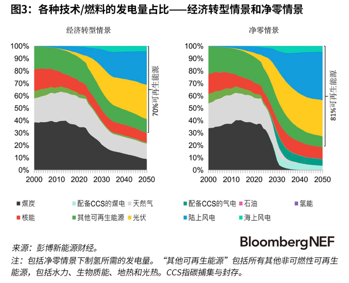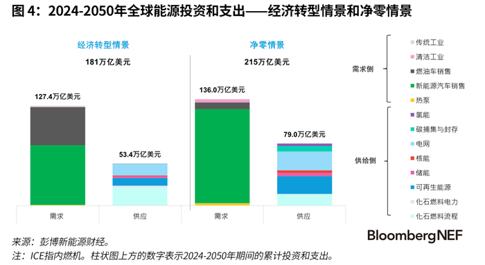 彭博新能源财经的净零情景所需投资仅比基准的经济转型情景高19%