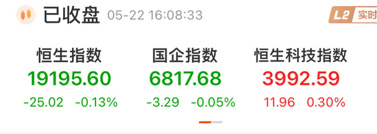 今日港股显著回暖,早盘港股三大指数小幅下挫后迅速拉升。截至收盘,恒生指数跌0.13%,报19195.6点。恒生国企指数跌0.05%,报6817.68点。恒生科技指数涨0.3%,报3992.59点。