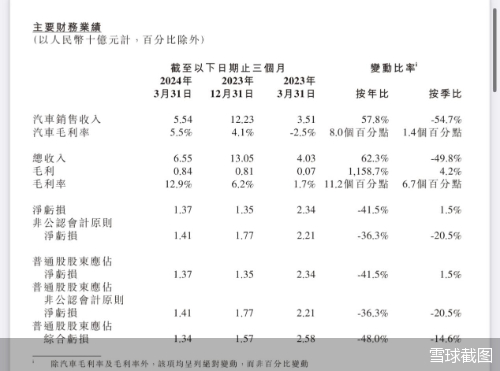 从账面数据看,今年一季度小鹏汽车的业绩同比得到改善,但环比仍面临不小压力。