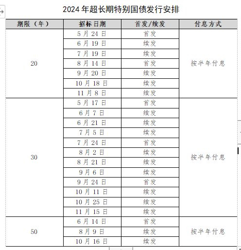 根据发行安排,20年期超长期特别国债将于5月24日首发。