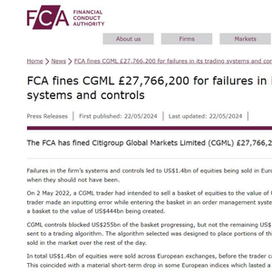 FCA因该错误对花旗集团罚款2777万英镑,英国审慎监理局则对该机构罚款3388万英镑。