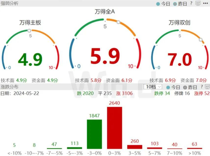 本周三(5月22日),沪深两市共3106家公司股价上涨,52家公司股价涨停。沪深大盘指数微涨,双创指数略强,但两市交易额只有8343.5亿元,仍未突破万亿成交额大关。