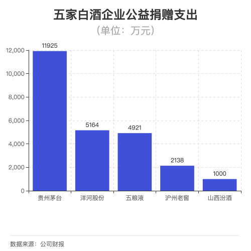 洋河股份和五粮液对外捐赠体量接近,分别为5164万元和4921万元。沪州老窖和山西汾酒对外捐赠较另外三家公司低,分别为2168万和1000万。