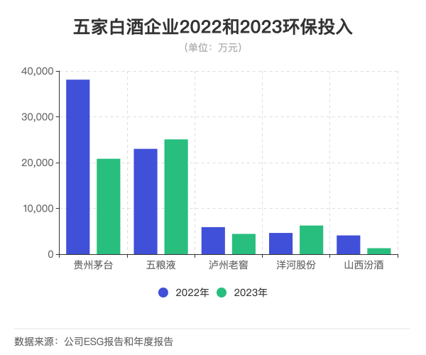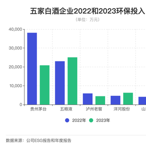 不过,从2022年和2023年对比来看,五粮液和洋河的环保资金投入都有增长,分别增加了9%和34.9%。而贵州茅台、山西汾酒和泸州老窖环保投入则大幅下降,贵州茅台同比下降45.3%,山西汾酒则同比下降68.07%,泸州老窖下降25.06%。