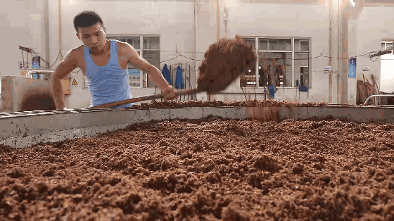 端午开始投放小麦生产酒曲,称之为端午制曲。小麦粉碎发酵四十天,到成品酒曲,全程大约三个月到半年。