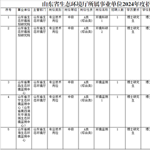 根据事业单位公开招聘有关规定,结合岗位空缺情况和工作需要,拟面向社会公开招聘中级专业技术岗位工作人员6名,具体岗位及条件详见《山东省生态环境厅所属事业单位2024年度招聘工作人员岗位汇总表》。