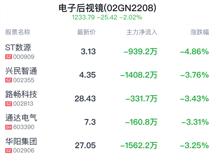 05月23日,电子后视镜概念盘中跳水,截至13点20分,电子后视镜概念整体指数下跌2.02%,报1233.790点。