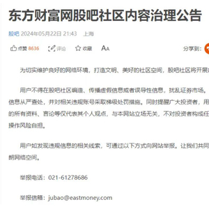 东方财富网股吧5月22日晚发布消息,为切实维护良好的网络环境,打造文明、美好的社区空间,股吧社区将开展内容专项治理。