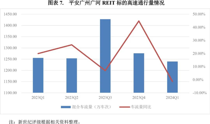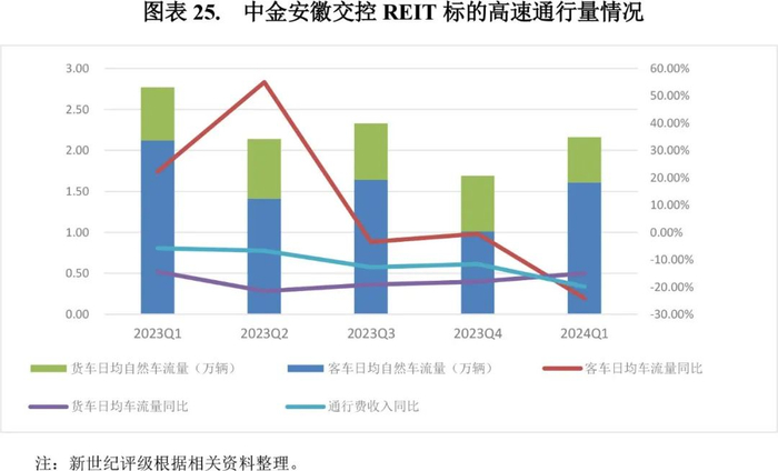 2024年第一季度,由于春节假期免费时间较往年多2天,当期虽然车流量同比略增,但通行费收入同比下降1.87%。