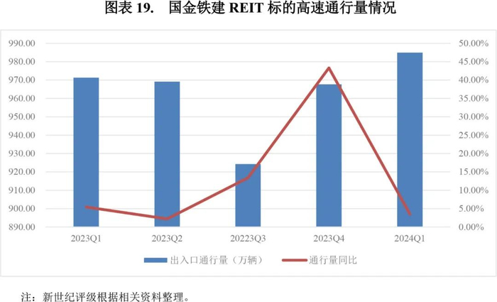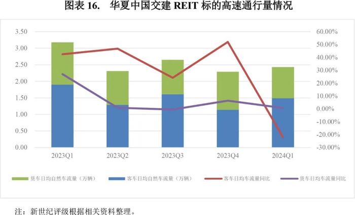 根据该REIT发布的2023年第四季度报告,基础设施项目日均自然车流量(不含免费车)为2.14万辆/天,其中客车日均自然车流量为0.87万辆/天,货车日均自然车流量为1.27万辆/天。基础设施项目当期实现通行费收入(不含税)6790.06万元,日均通行费收入(不含税)89.34万元,同比增长24.18%。当期车流量与通行费收入同比增长,主要受益于宏观经济恢复,出行车辆有所增多,且济南至菏泽高速公路改扩建期间的交通管制将部分原来经济菏高速往来济南及其以北地区和菏泽及商丘方向的车辆引流至鄄菏高速通行。