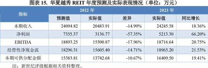 2023年,该REIT实现营业收入为3.90亿元,净利润为0.92亿元,经营活动产生的现金流净额为2.36亿元,可供分配金额为2.28亿元,净现金流分派率为7.88%。与预测值相比,该REIT当年收入和净利润较预测值有所下降,主要由于高速货车流量尚未完全恢复、平望服务区租金计费方式调整导致租金收入不及预期。