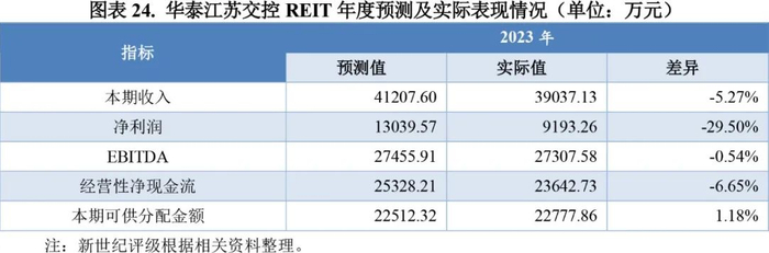根据年度报告,2023年该REIT实现营业收入为7.84亿元,净利润为1.28亿元,经营活动产生的现金流净额为5.59亿元,可供分配金额为4.88亿元,净现金流分派率为10.22%。与预测值相比,2023年该REIT的实际运营表现好于预测值,主要系川渝地区经济持续恢复,居民出行意愿增强,车流量恢复情况良好。