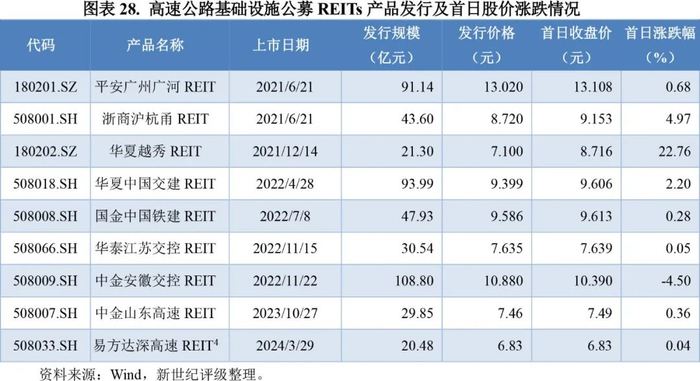 2023年10月27日,中金山东高速REIT发行上市;2024年3月29日,易方达深高速REIT发行上市,具体情况可见下表。